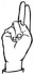 На ћирилици написано РУМЕНА ИВАНОВИЋ састоји се из 14 слова [?]. Исписано ћириличном једноручном азбуком за глувонеме: